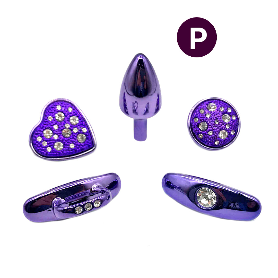 Plug anal de luxo "Hard" feito em metal polido com formato cônico, acompanha 4 alças em metal removível com tamanhos e formas diferentes e detalhes em joias!