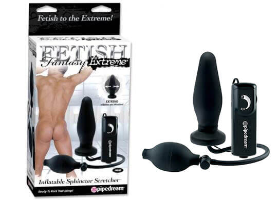 Plug inflável em formato cônico em PVC com capa inflável em látex macio com vibração multivelocidade controlada por controle remoto de fio e pera de bombeamento.
