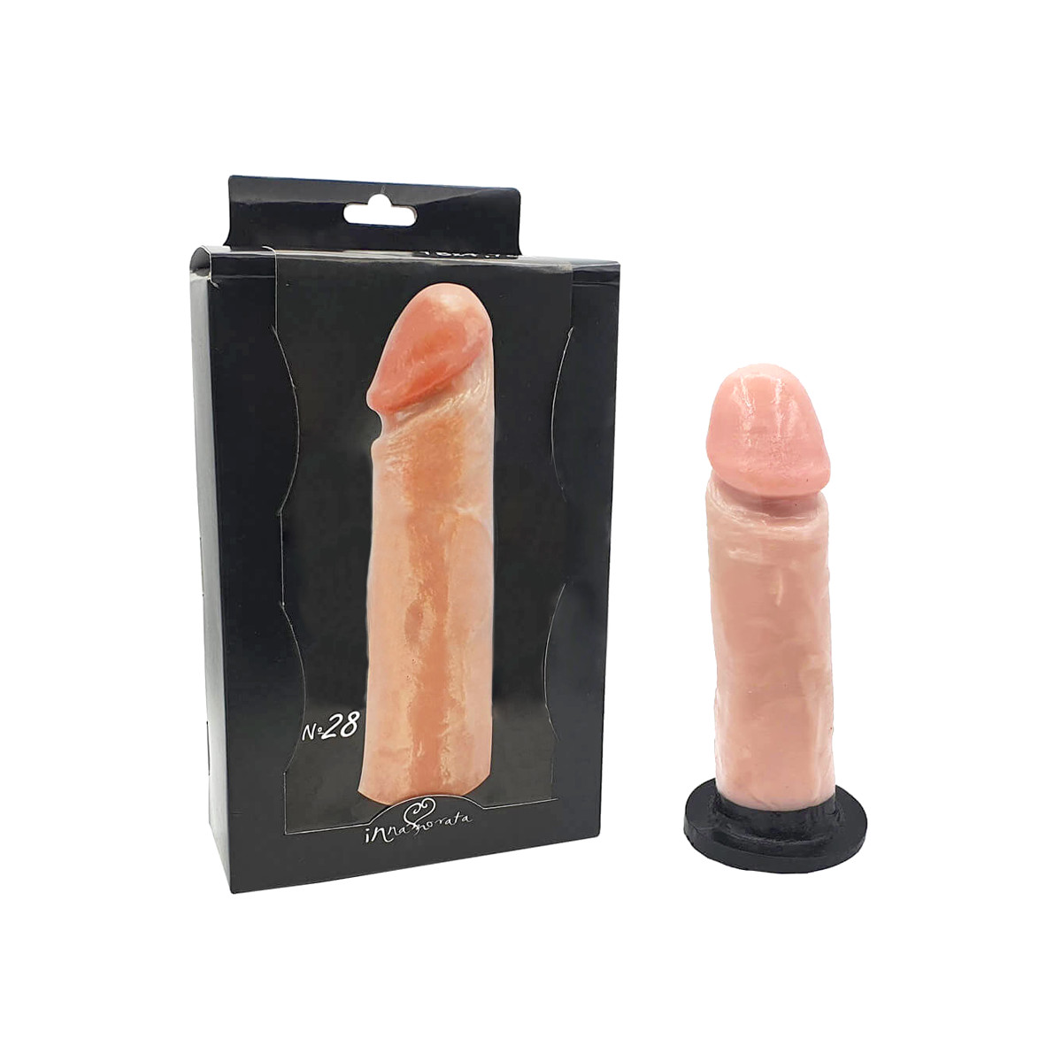 Prótese realística em PVC, no formato de pênis com glande definida, leves texturas de veias e base achatada para cintas penianas. Gostou? Role a página pra saber mais!