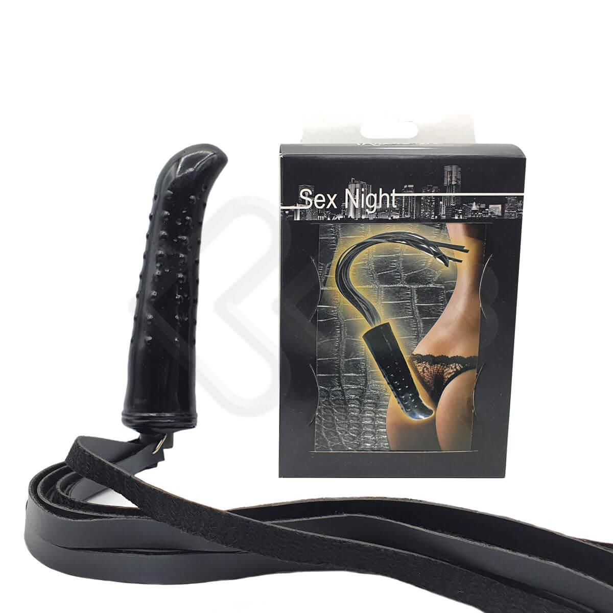A Innamorata desenvolveu um ótimo chicote com tiras em couro no formato de prótese peniana de ponto G. A prótese possui um formato inclinado em sua ponta para estimular o ponto G, corpo com texturas de bolinhas e chicote com 10 tiras de 32 cm.