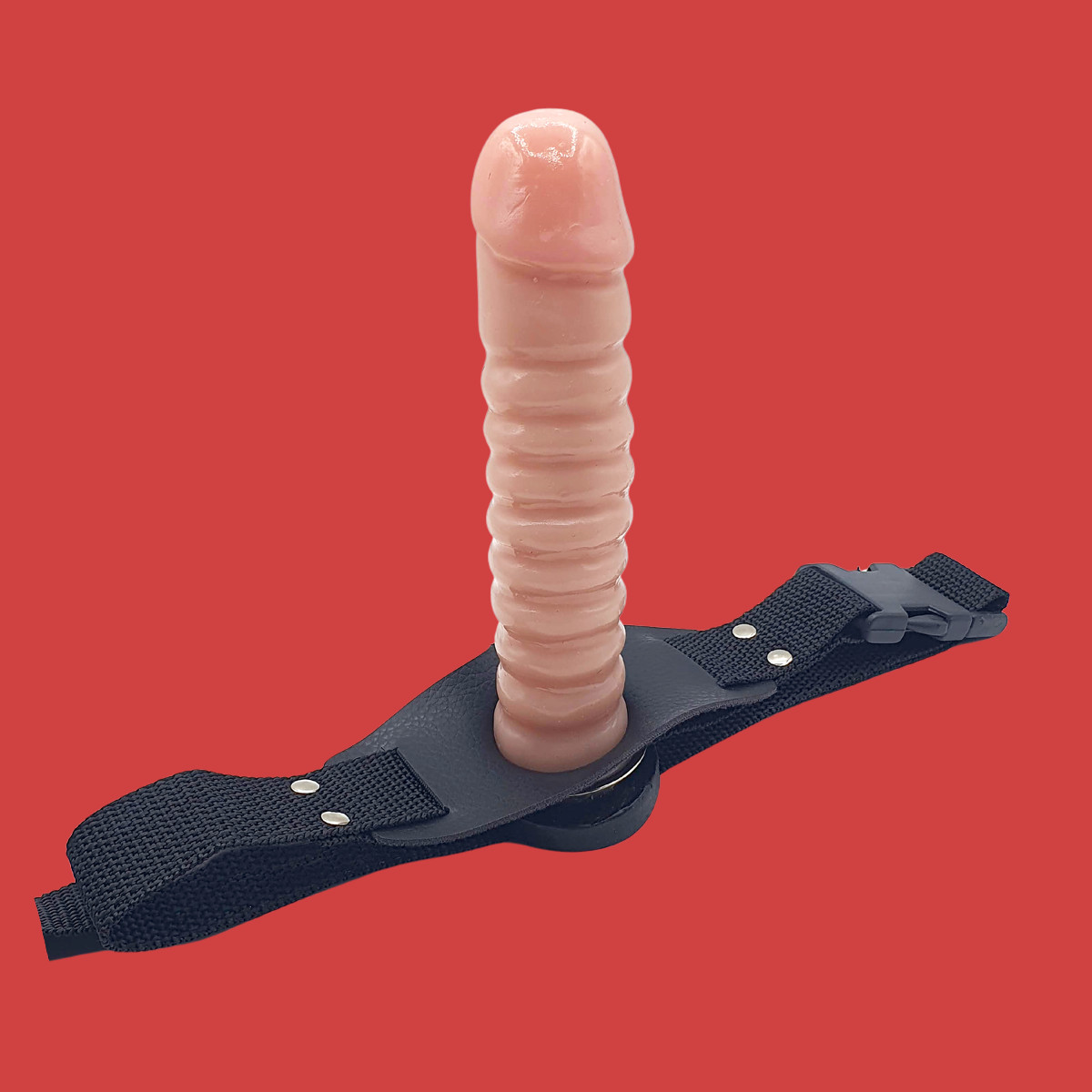Cinta peniana feita em nylon com regulagem e trava de segurança. Acompanha prótese peniana em PVC atóxico com esferas massageadoras, glande definida e base em ventosa!