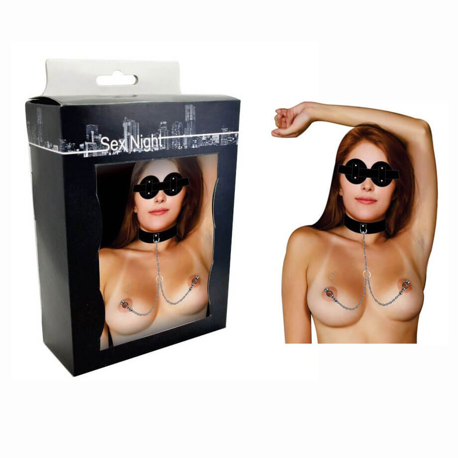 Coleira sex com prendedores de mamilos é incrível e da para surpreender muito! Acompanha máscara para deixar o momento com mais suspense! Já da para imaginar as brincadeiras que esse combo proporcionará, né?