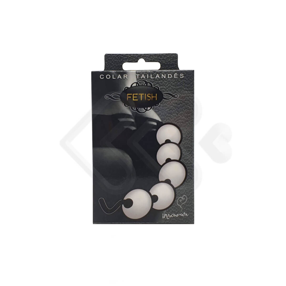 Colar tailandês composto por 5 esferas feitas em PVC atóxico, presas ao um cordão em silicone, que garantem diversos benefícios sexuais e de saúde dentro da prática do pompoarismo.
