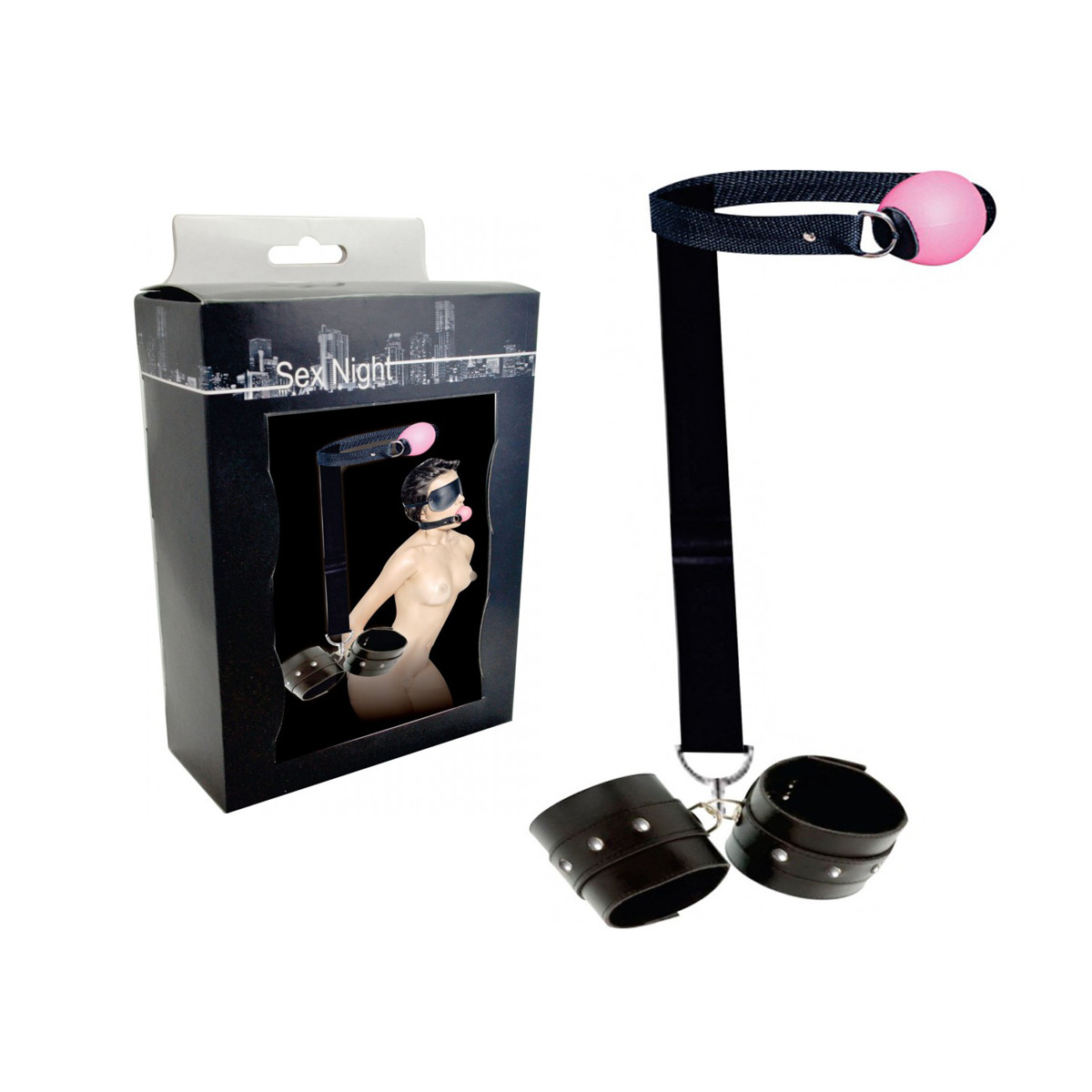 Kit "Gag Ball" com algemas ajustáveis em velcro e venda com detalhes em rebite, confeccionadas em couro ecológico e mordaça feita em nylon com mordedor de borracha! Se interessou? Vou te contar tudo aqui embaixo!