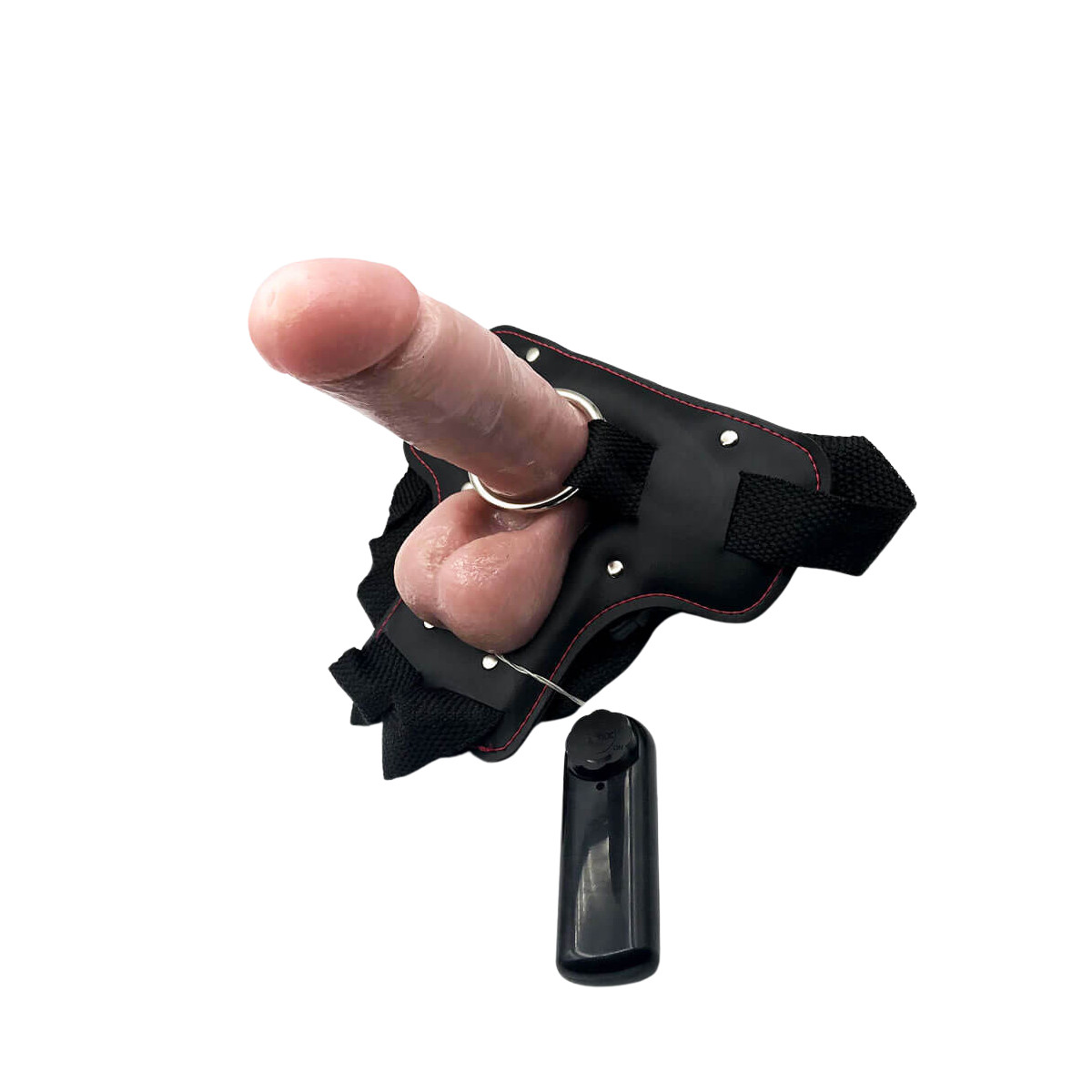 Cinta peniana em couro com alças ajustáveis, sustentação traseira e fecho. Acompanha pênis realístico em PVC com vibração multivelocidade e controle remoto com fio. Role a página para ver!