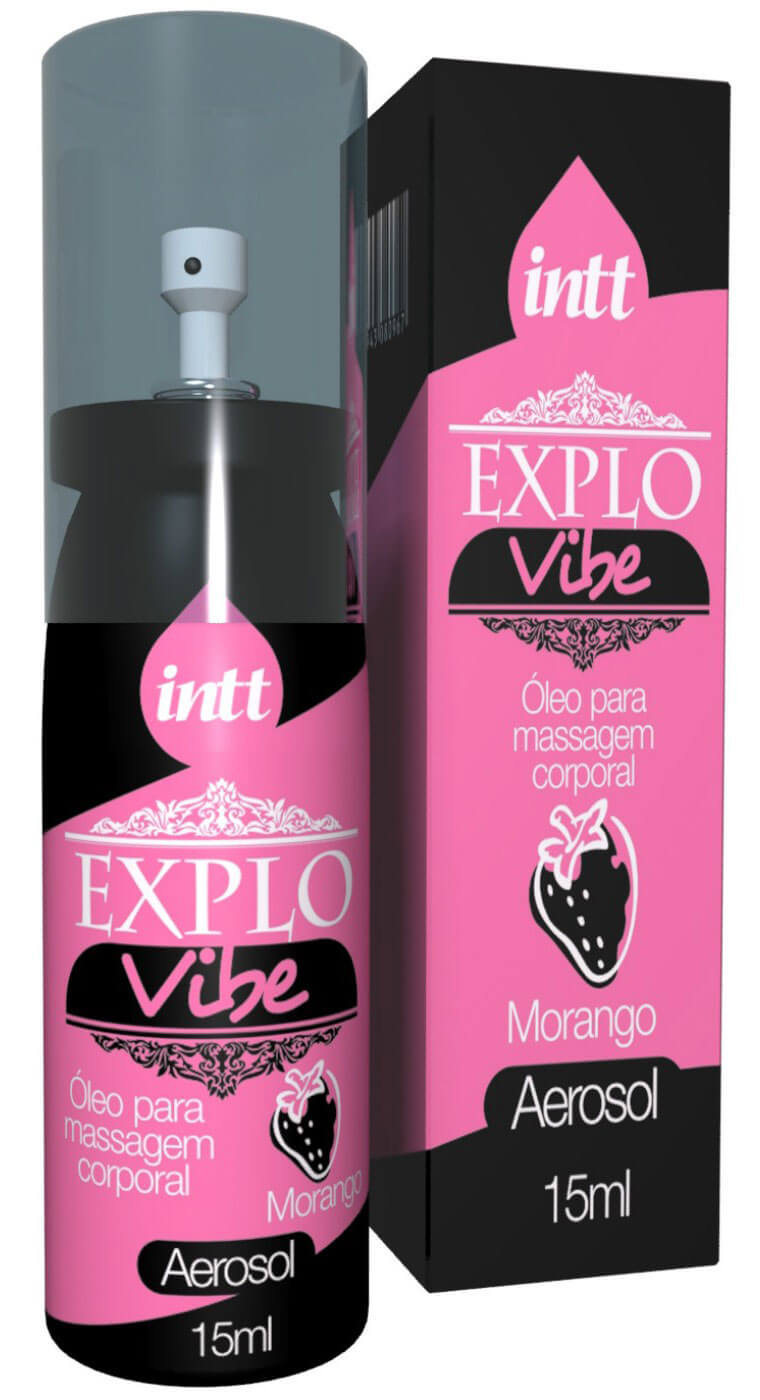 Intt Explo Vibe é um spray aerosol corporal comestível com delicioso sabor de morango, que quando em contato com a pele provoca efervescência e vibrações.