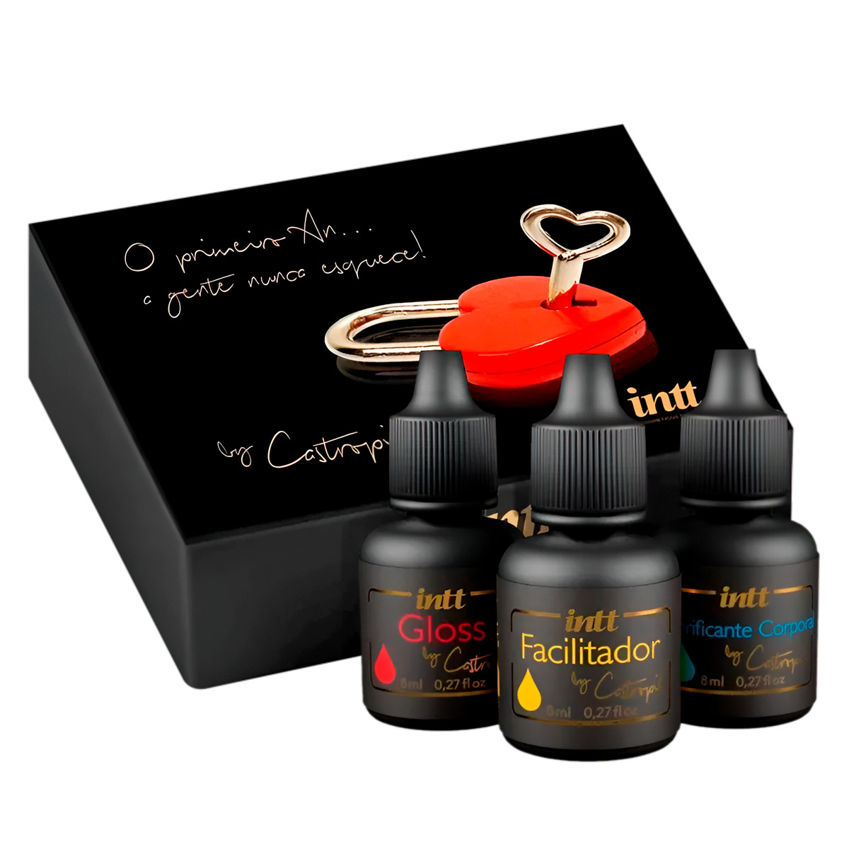 Não tem uma sequencia certa para usar esse kit, mas podemos te informar o que cada um faz, o Gloss é para as preliminares que pode ser passado em primeiro lugar, em segundo lugar o dessensibilizante para relaxar e logo após pode usar o lubrificante para a relação!