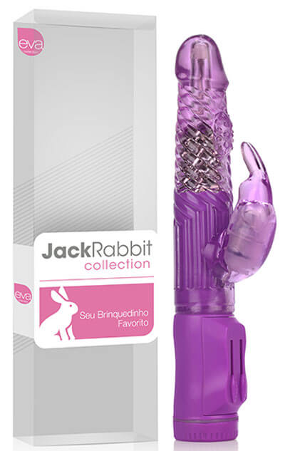 Vibrador rotativo com 8 programas de vibração, corpo peniano flexível e texturizado em espiral para maior sensibilidade e estimulador clitoriano em forma de coelho.