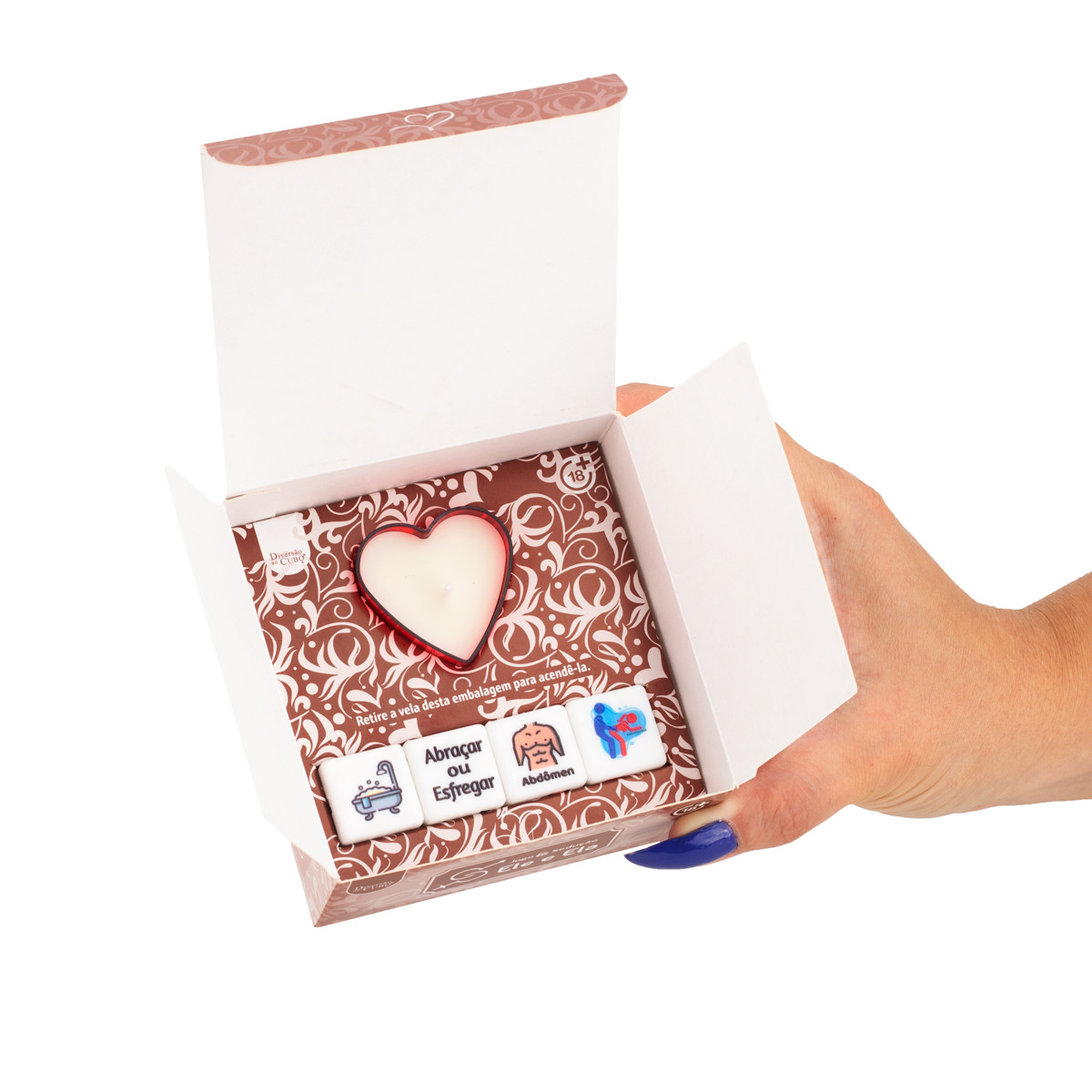 Jogo & Sedução Ele e Ela contém 4 dados com ações e posições para elevar o clima a dois. O kit traz uma vela com aroma de sândalo para criar o cenário perfeito. Lance os dados, sinta a excitação e tenha um final muito feliz!
