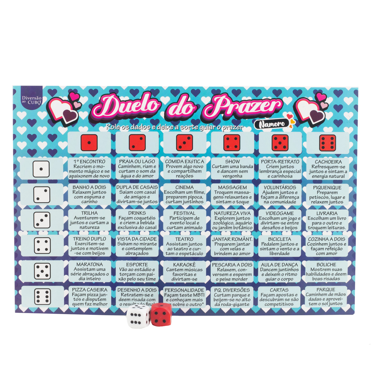 Transforme momentos simples em aventuras inesquecíveis com o Jogo Duelo do Prazer "Namoro". Perfeito para casais que desejam apimentar a relação, esse jogo propõe desafios divertidos que fortalecem a conexão e criam memórias especiais, estimulando cumplicidade e diversão a dois!