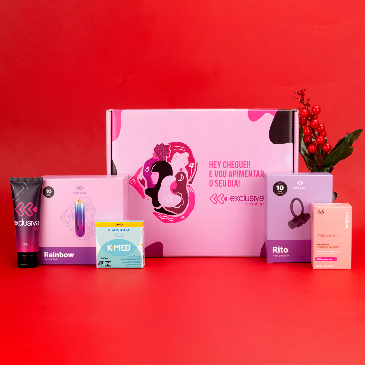 Transforme seu Natal em uma experiência inesquecível com o Kit Exclusiva Especial de Natal! Com 5 itens que incluem lubrificantes beijáveis, um bullet vibratório e um anel peniano, este kit proporciona prazer e conexão intensa, elevando o clima para momentos quentes e divertidos a dois!