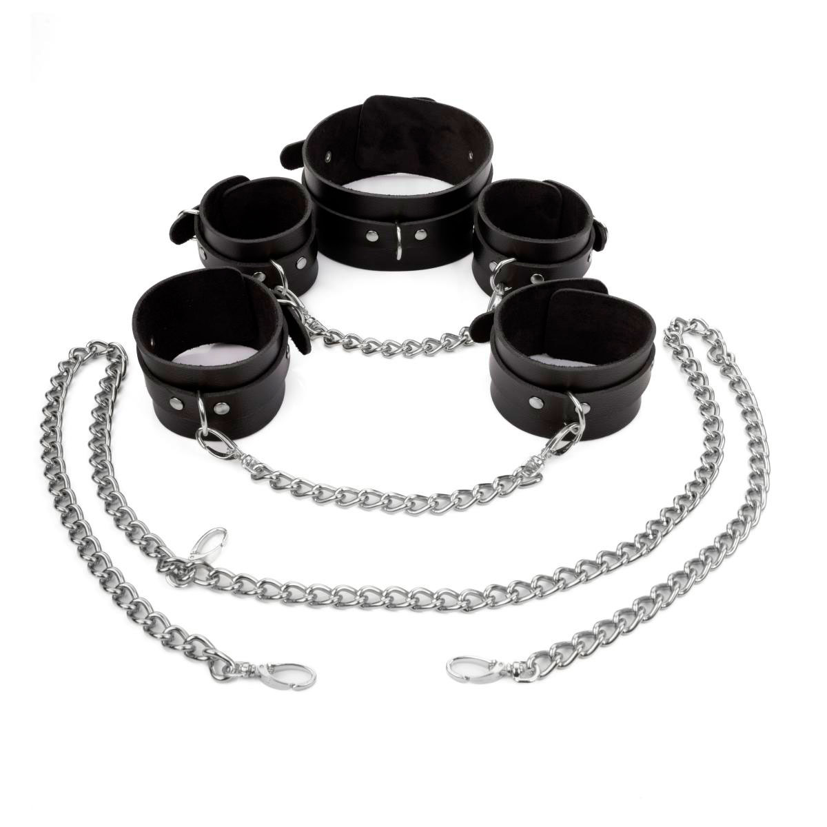 Kit com Bolsa para Armazenar o Kit, Venda, Algema em metal e Chicote em Couro Sintético - Ultimate Bondage