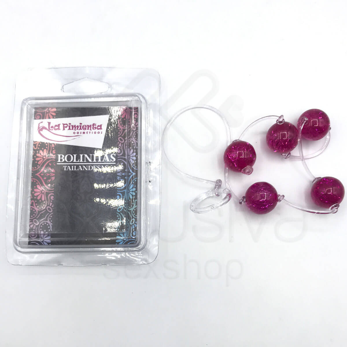 Colar tailandês com 5 bolas para estimular e pompoar com cordão transparente para segurança.