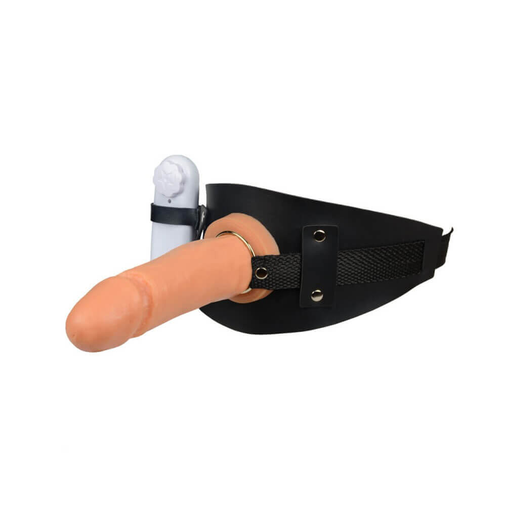 Cinta de coxa com prótese peniana removível no formato de pênis ereto com glande definida, vibração multivelocidade e alças com regulagem de ajuste. Experimente essa nova forma de sentir prazer. Vem saber mais!
