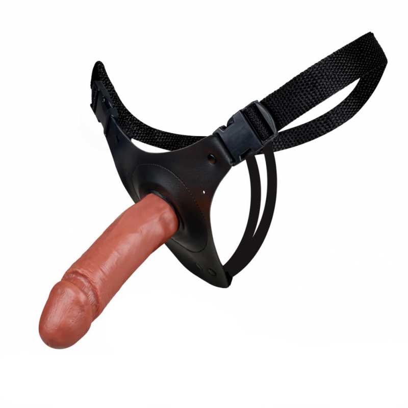 Cinta peniana feita de couro sintético com ajuste e pênis ultra realístico de silicone, fixado à cinta, com glande definida e textura de veias salientes. Chega mais!