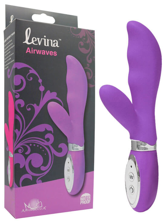 Vibrador estimulador de Ponto G com textura de ondas que estimulam o canal vaginal e estimulador clitoriano, fabricado em silicone suave ao toque.