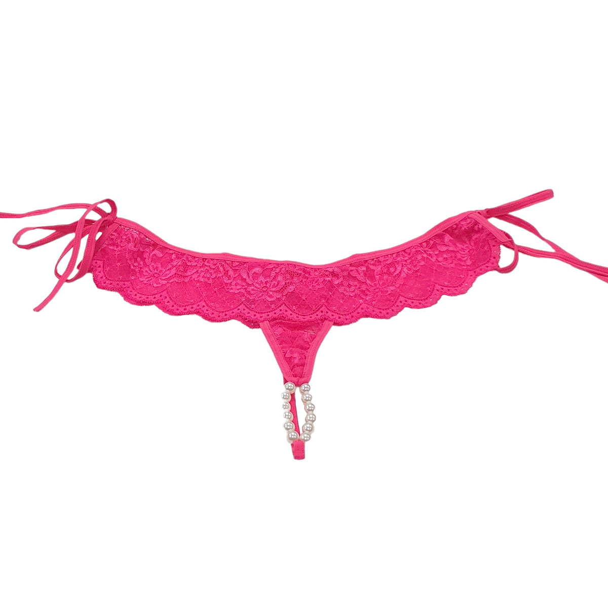 Calcinha fio dental no modelo tailandesa, toda produzida em renda com amarras nas laterais e abertura inferior com detalhes de pérolas! Vem cá, chega mais!