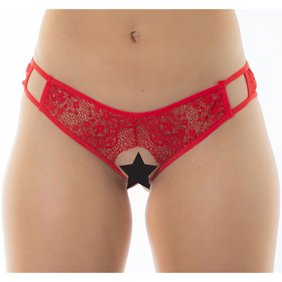 Calcinha feita em tecido de renda, com elásticos a grande abertura que deixa a parte frontal e traseira à mostra. Seu amor ficará louco(a), aproveite!