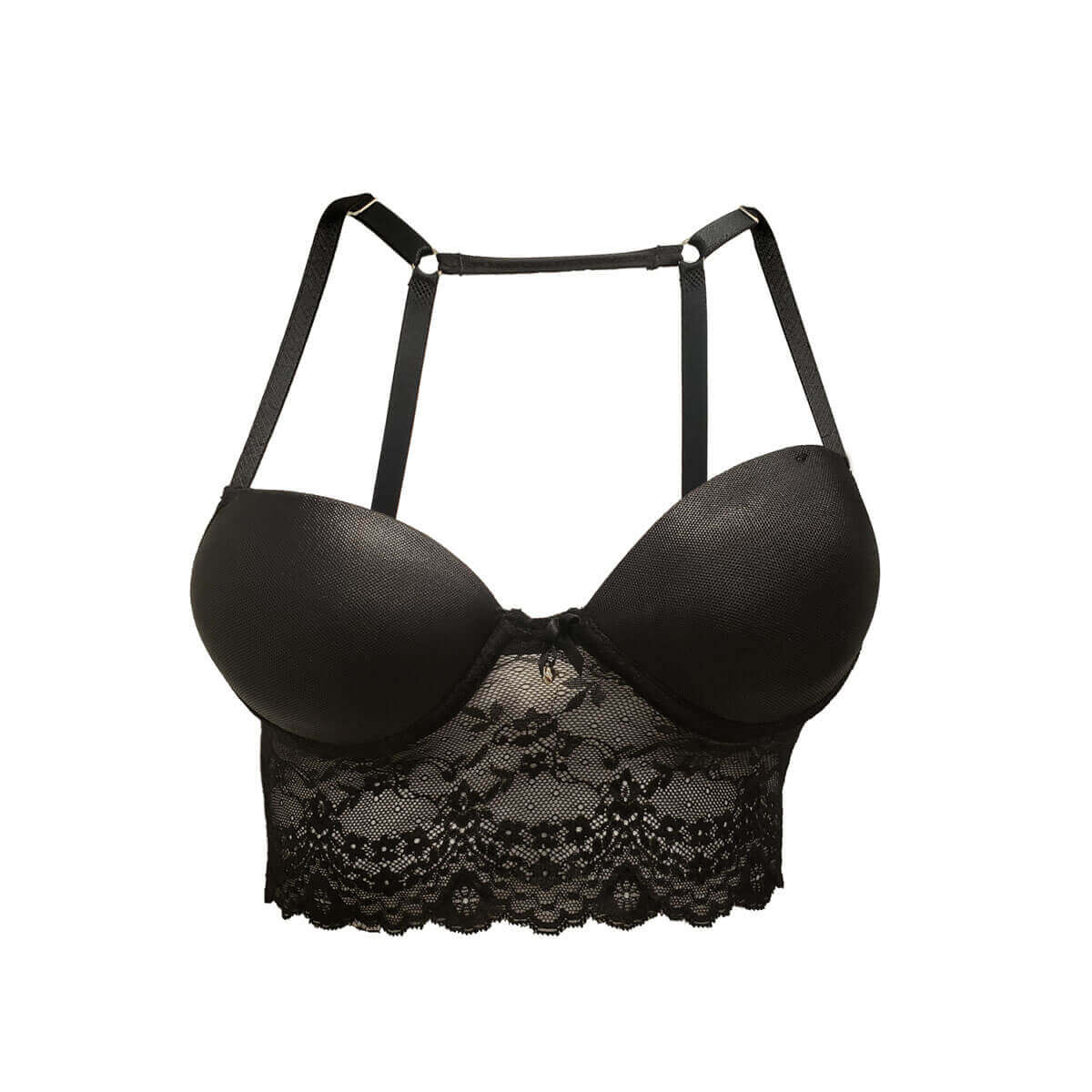 Sutiã Santropê confeccionado em renda e tule. Possui alças reguláveis com detalhes nas costas e zíper lateral na renda.