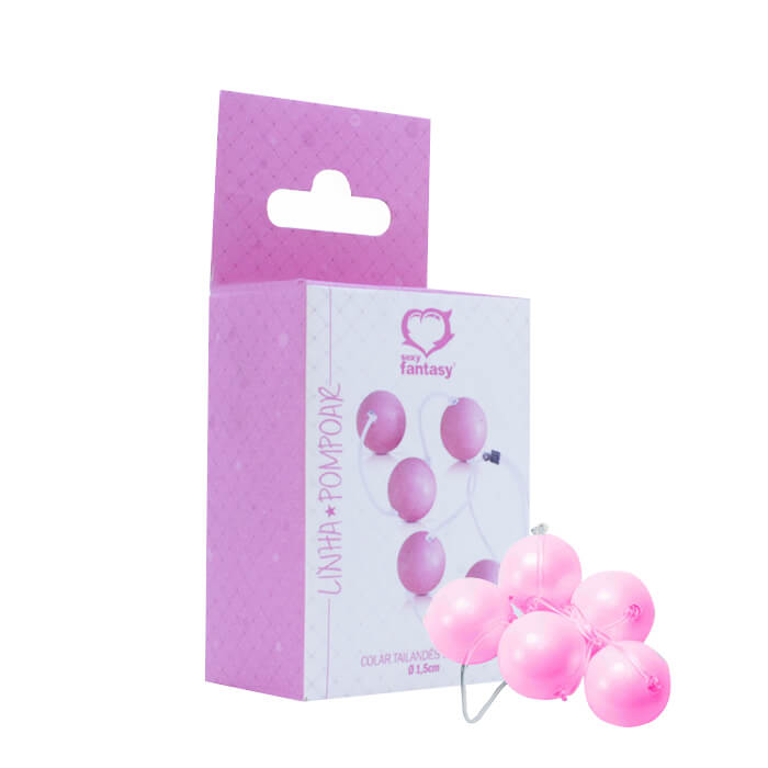 Colar tailandês com 5 esferas e cordão confeccionado em silicone.