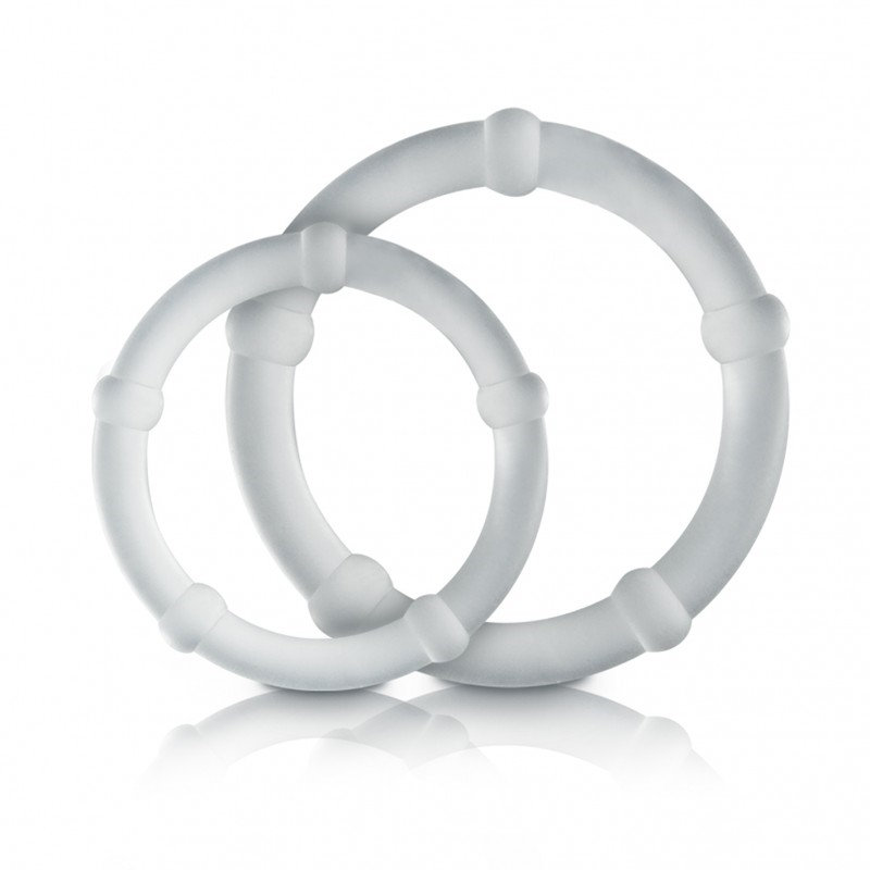 Conjunto de anéis penianos confeccionados em silicone, possui dois tamanhos diferentes adequando-se perfeitamente ao seu pênis. Tamanhos P e M.