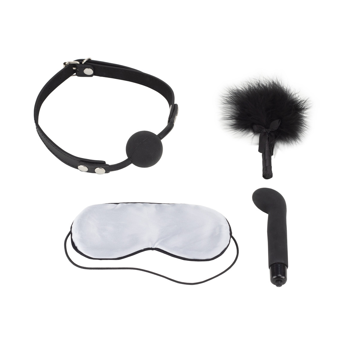 Experimente o Lovetoy Deluxe Bondage Kit, que inclui 4 peças para uma experiência sadomasoquista com mordaça, venda, pluma e vibrador ponto G com vibração única. Esse produto é perfeito para apimentar suas noites e descobrir uma nova forma de sentir e dar prazer! Vem saber mais aqui!