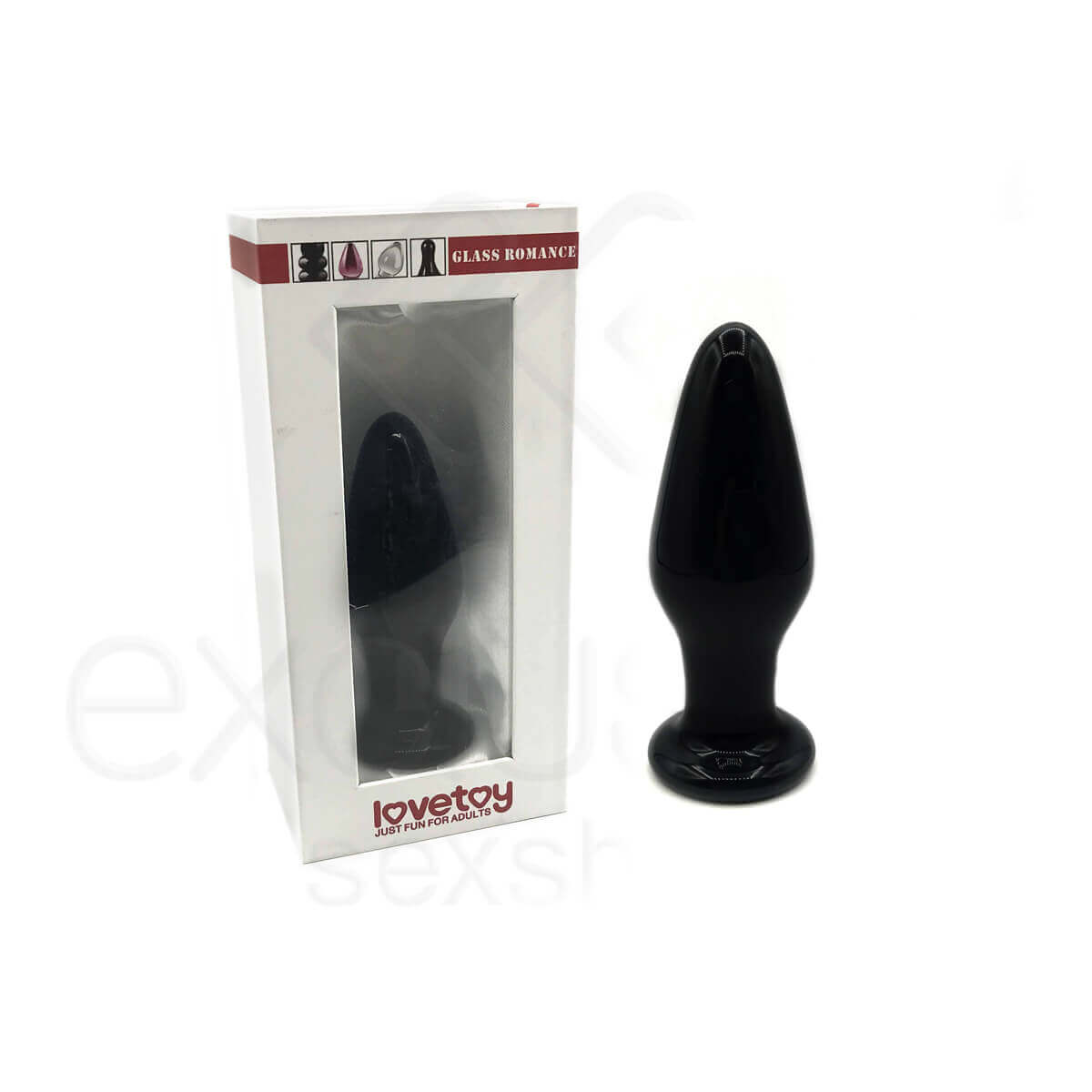 Plug anal confeccionado em vidro com formato cônico e base para facilitar o manuseio.