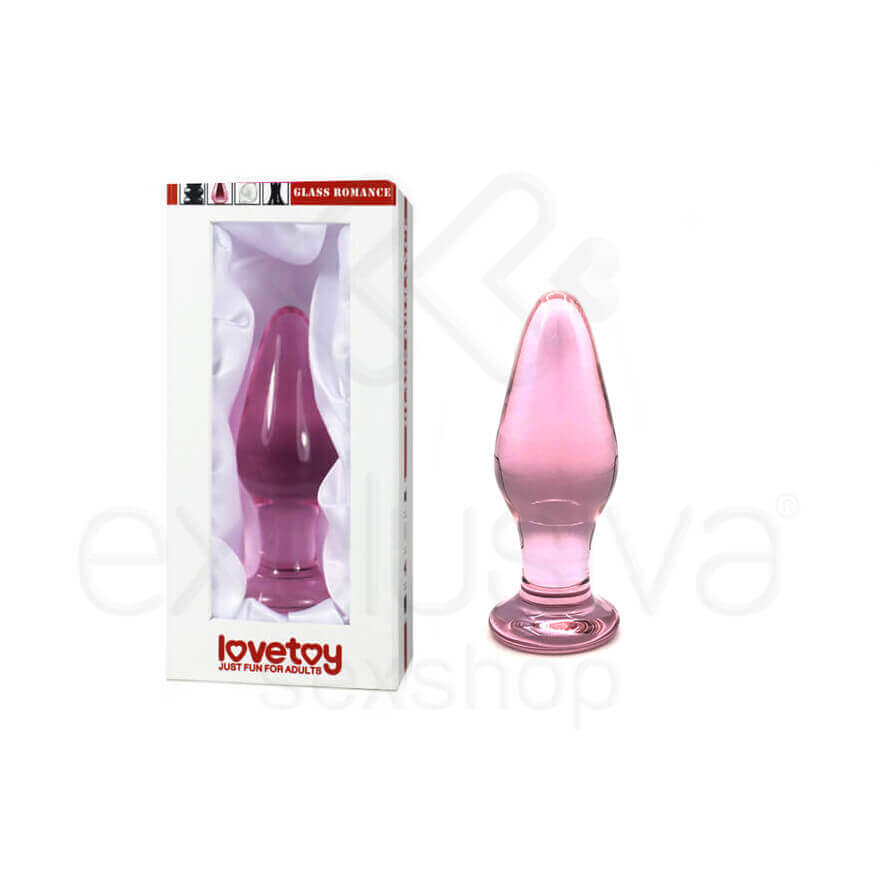 Plug anal confeccionado em vidro com formato cônico e base para facilitar o manuseio.
