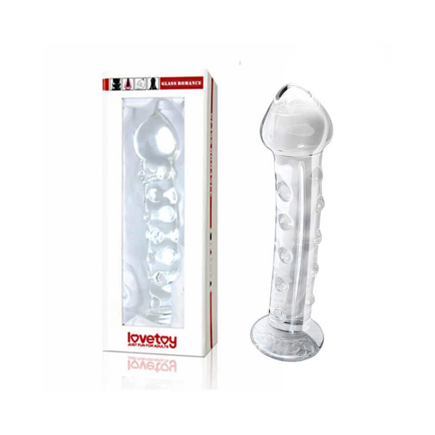 Plug anal com nódulos massageadores, ponta cônica e base para melhor manuseio. Confeccionado em vidro.