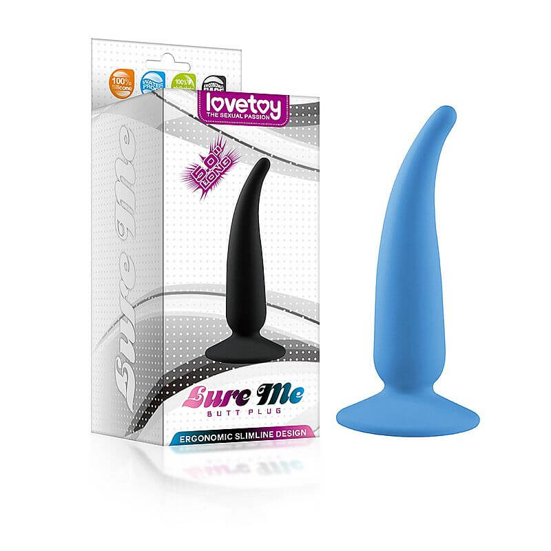 Plug anal confeccionado em silicone com formato cônico, ventosa e ponta levemente curvada.