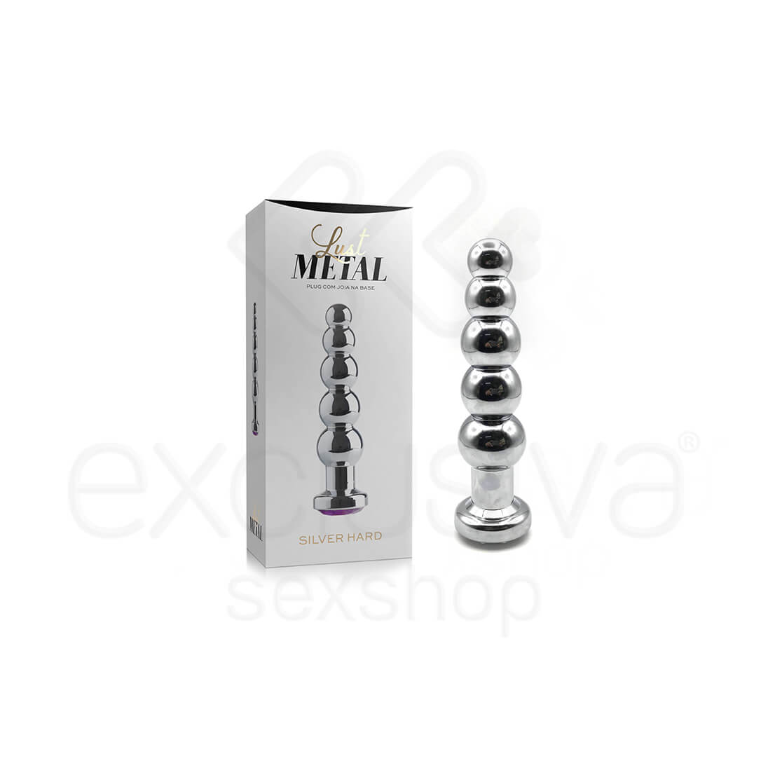 Plug anal com 5 esferas em formato anatômico, feito em metal com joia na base que lhe proporciona momentos únicos.
