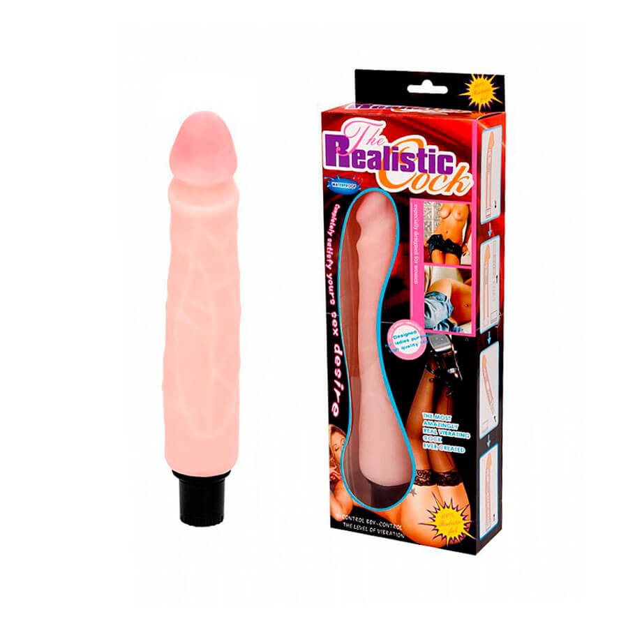 Prótese peniana confeccionada em cyberskin atóxico de altíssima qualidade, com glande definida, veias salientes, prepúcio e vibração multivelocidade.