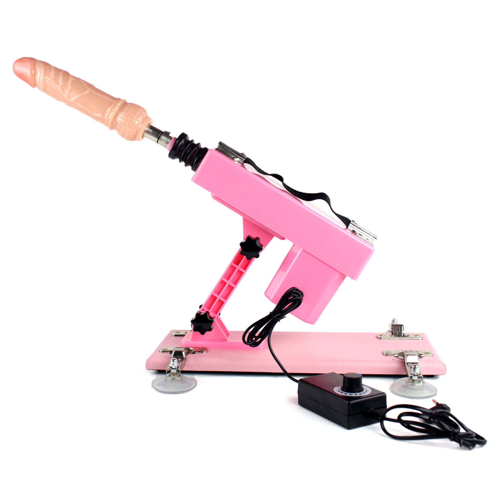 Olá! A máquina tem motor bivolt com multivelocidade, proporcionando intensidade regulável. É possível adaptar dildos maiores, desde que tenham base compatível com o encaixe.