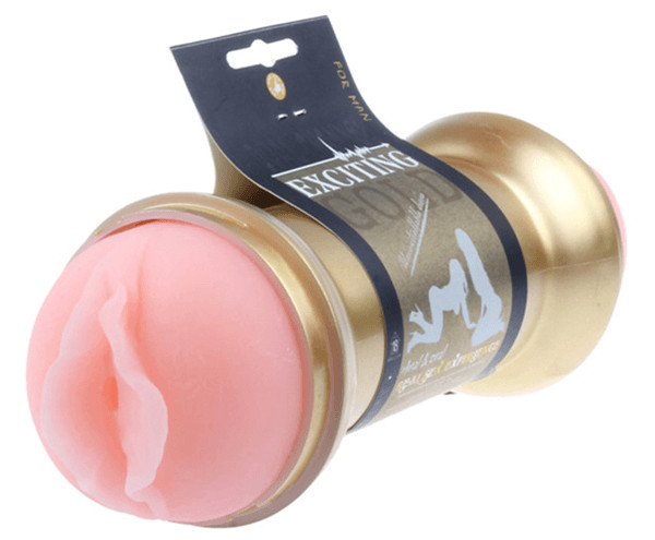 Masturbador duplo em formato de halteres, possui um orifício para a simulação do sexo vaginal, em formato realístico de vagina, e outro em formato de ânus, para simulação do sexo anal.