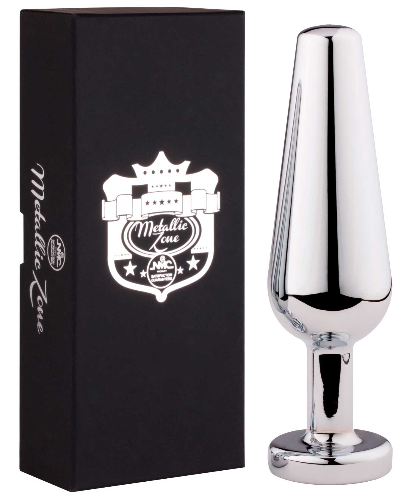 Elegante e sofisticado plug anal, desenvolvido totalmente em alumínio cromado. Possui base de apoio e diâmetro gradual em sua forma cônica.