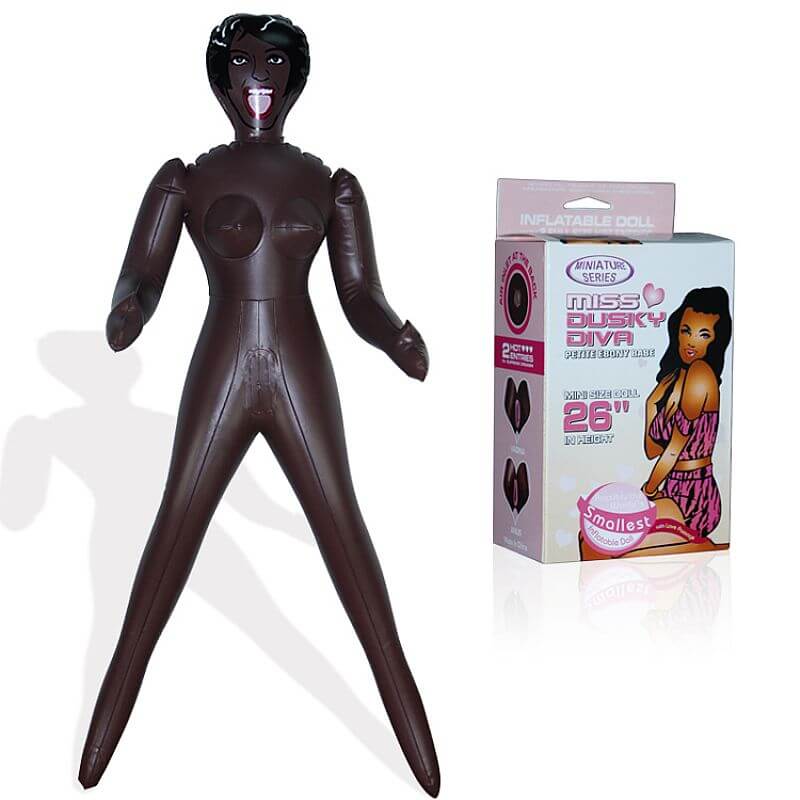 Mini Boneca Inflável morena com 2 orifícios penetráveis, 66 cm de altura, rosto pintado e seios fartos