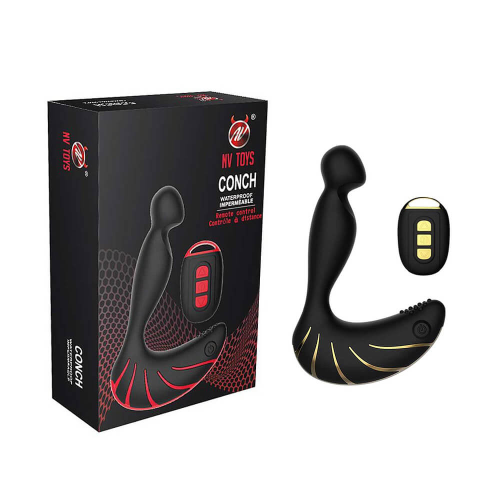 Massageador estimulador de próstata e períneo recarregável, feito em silicone soft touch e ABS atóxico com 10 modos de vibração em 3 intensidades diferentes e controle remoto sem fio.