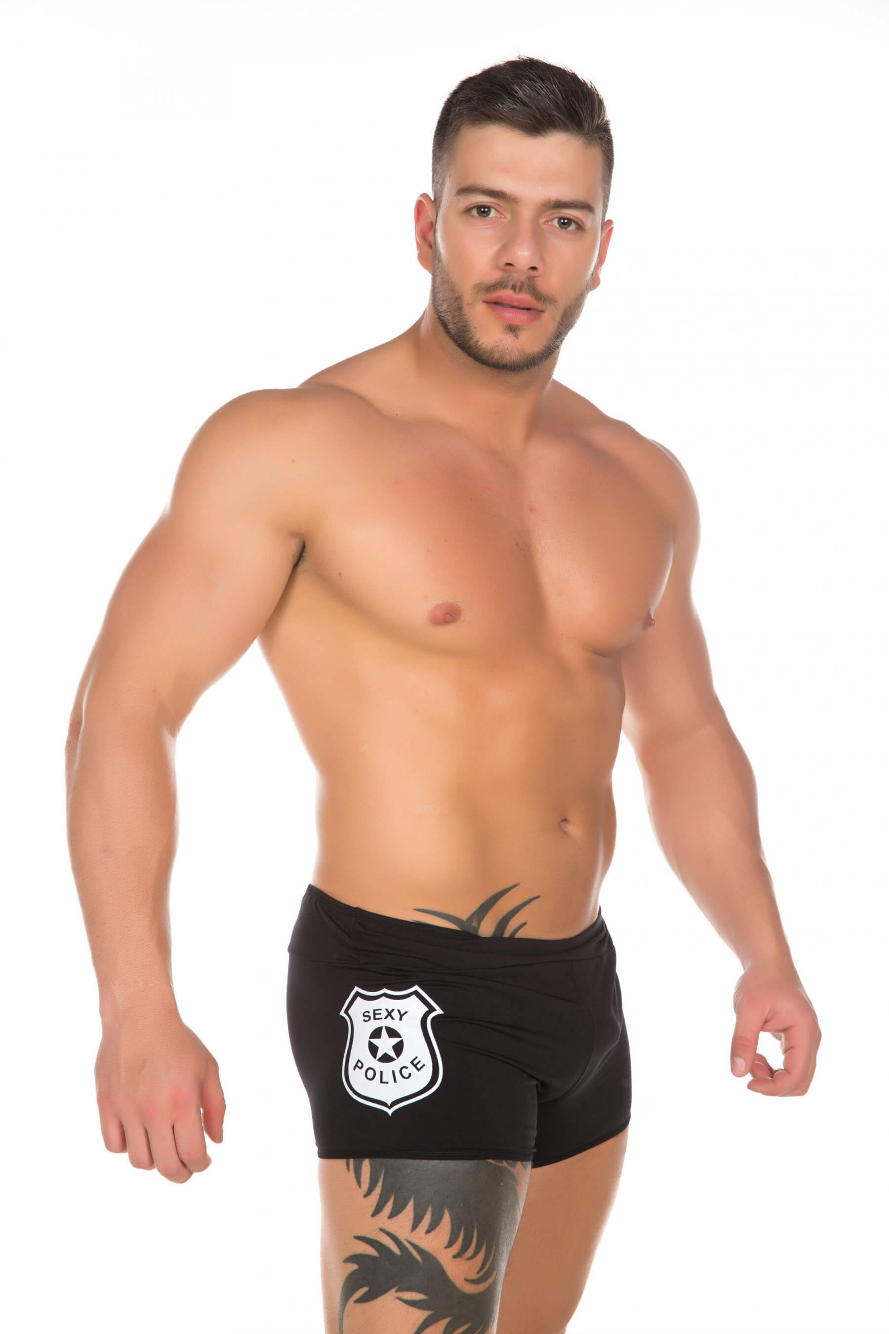 Cueca policial confeccionada em malha com brasão de policial sexy.