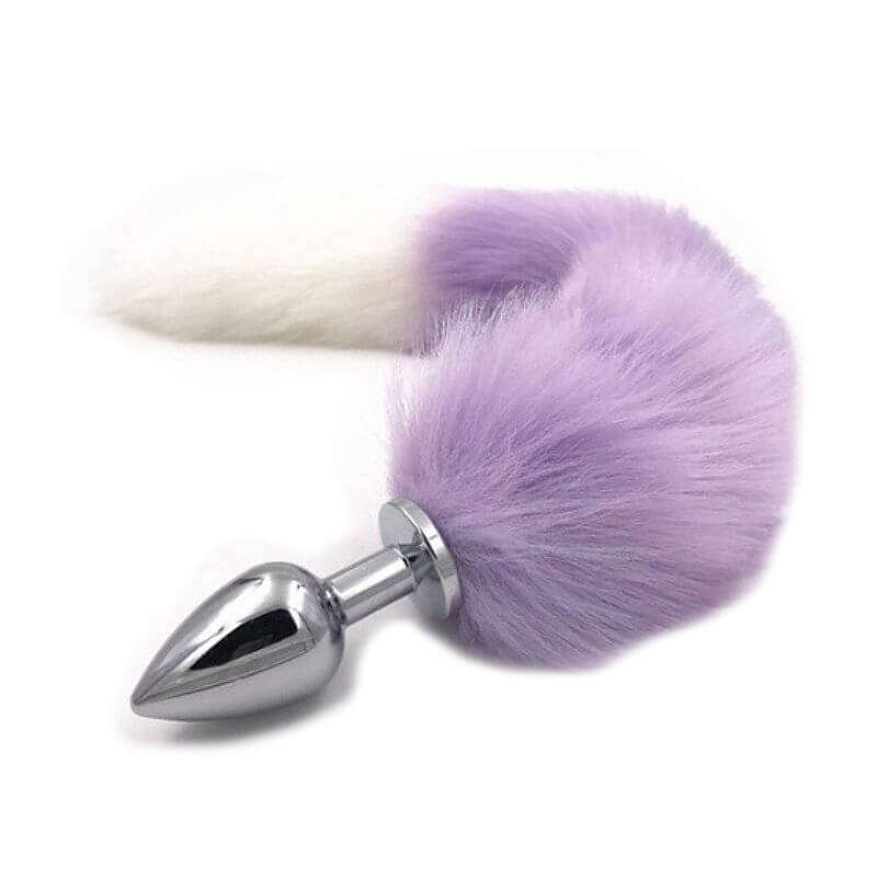 Divertido plug anal de aço e rabo para a brincadeira com o seu amor ficar mais gostosa e prazerosa. Rabo feito na cor roxo e branco.