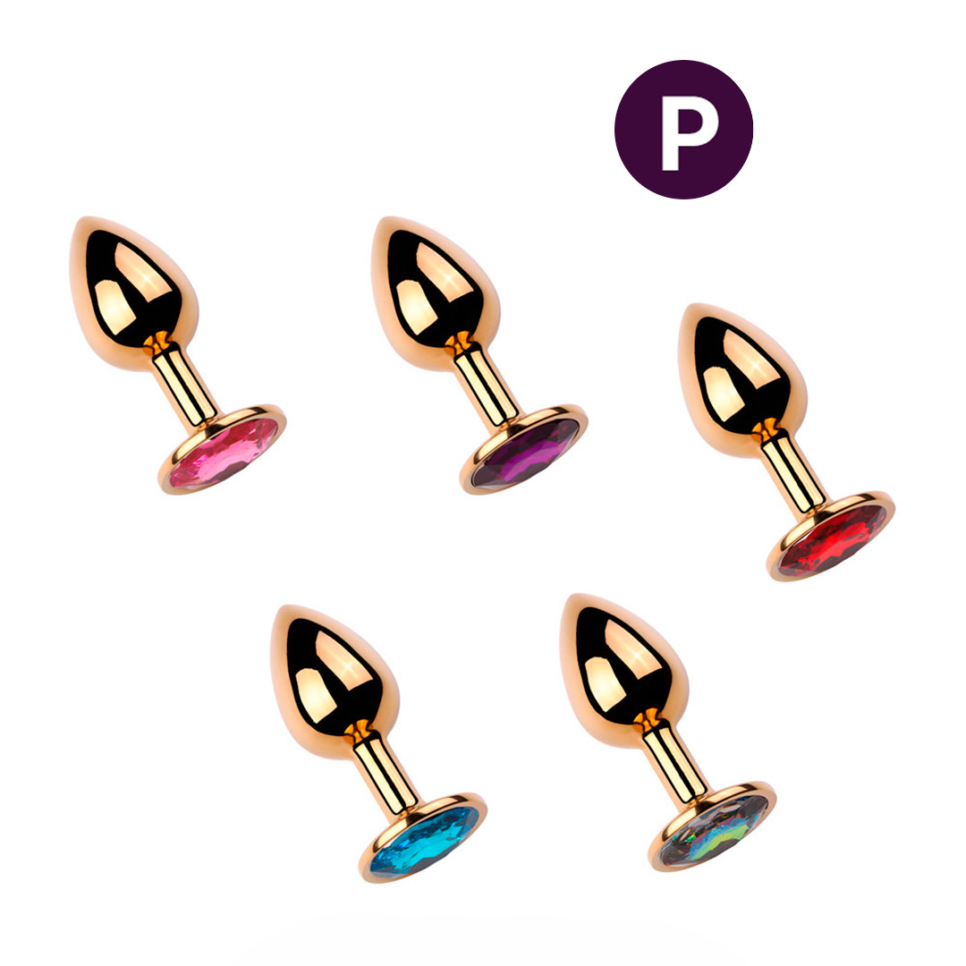 Que tal deixar sua masturbação mais gostosa hoje com o plug anal confeccionado por aço dourado, no tamanho P, ele possui formato cônico com detalhe de uma bela pedra brilhante na base. Confira abaixo para saber mais!