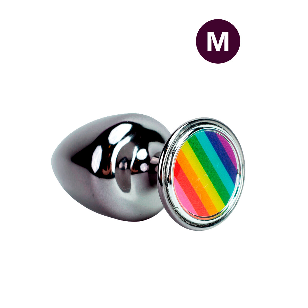 Plug Anal tamanho "M" em formato cônico e metal dourado com detalhe na base com a bandeira do Orgulho. Aproveite e chame seu amor para um momento cheio de prazer. Vem saber mais dessa belezinha aqui embaixo!