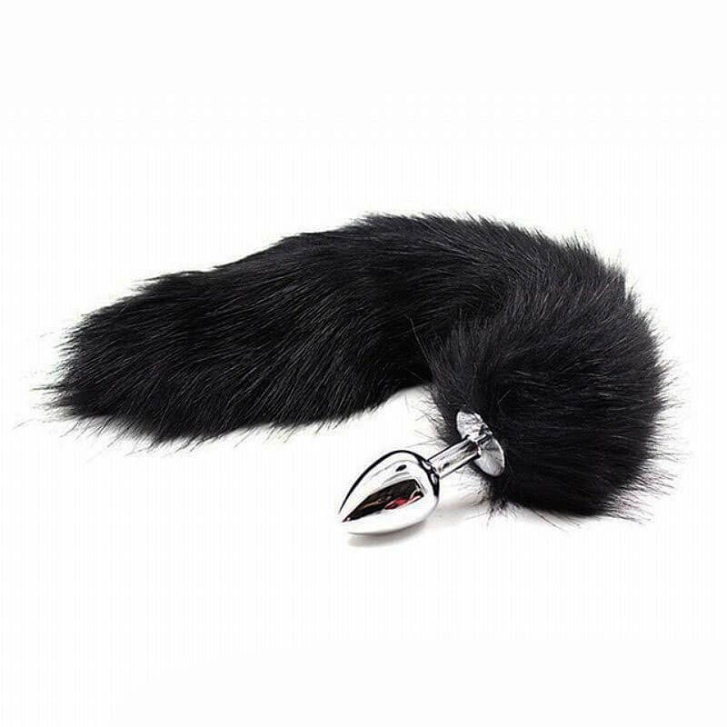 Plug anal cônico confeccionado em metal com realístico rabo de raposa.