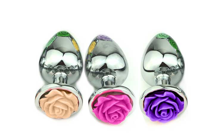 Plug prata em metal inoxidável, com formato cônico e detalhe de flor na base. É tamanho G e está disponível em 3 Cores (Rosa, Roxo e Creme). As cores podem variar o tom.