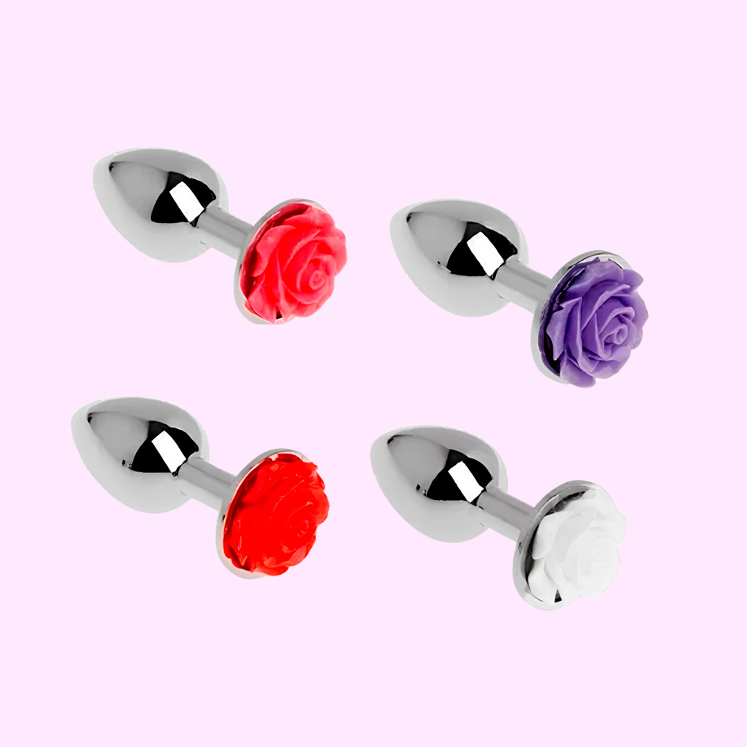 Plug prata em metal inoxidável, com formato cônico e detalhe de flor na base. Ui, deu água na boca aí? Chega mais!