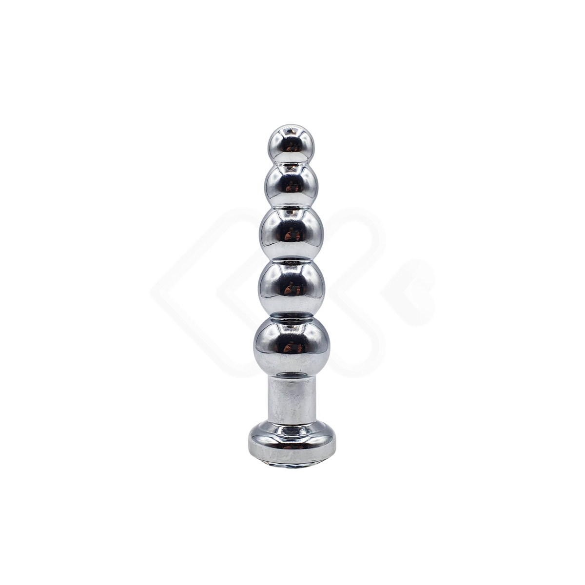 Plug anal com 5 esferas em formato anatômico, feito em metal com joia na base que vai te proporcionar momentos únicos!