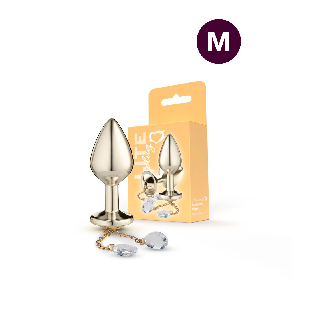Plug anal tamanho M com forma cônica e pingente de cristal para deixar a brincadeira mais divertida. Vem e saiba mais!