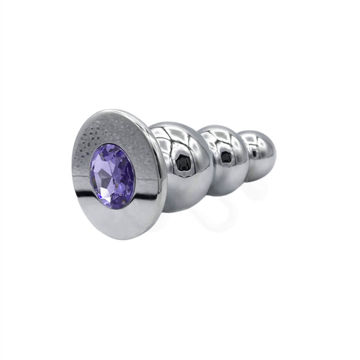 Plug anal feito em aço polido, com 3 esferas de diferentes tamanhos e uma linda pedra na base.