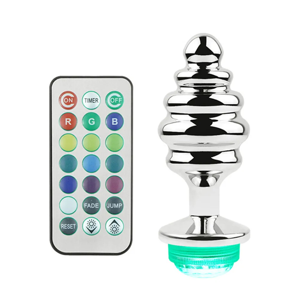 Bora deixar a sua relação anal mais animada?! Plug anal escalonado no tamanho G com luz LED e controle remoto sem fio para brincadeiras bobas e gostosas! Chega mais!