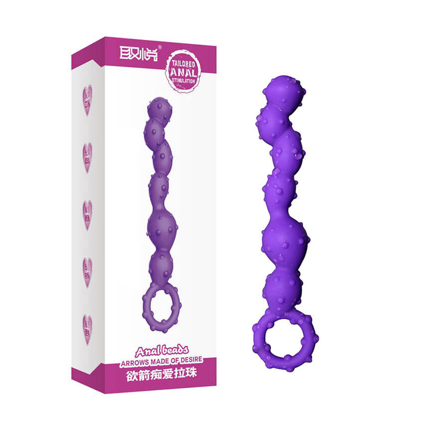 Plug Anal todo confeccionado em em silicone com nódulos estimuladores e anel de segurança.