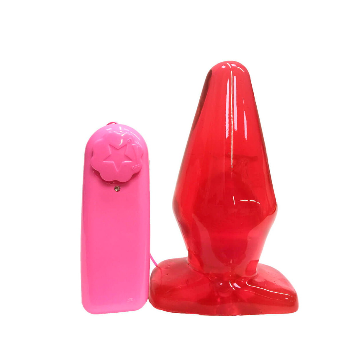 Plug anal em formato cônico com vibração multivelocidade controla por controle remoto de fio, e base achatada para posicioná-lo na posição vertical!